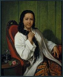 | Keywords: COLLECTIE TROPENMUSEUM Olieverfschildering door J.D. Beynon van een Indisch meisje Wilhelmina M. Martherus TMnr 1913-1.jpg Artwork Creator Jan Daniel Beynon nl Olieverfschilderij J D Beynon werd in 1830 geboren in Batavia Na zijn opleiding in Amsterdam aan de Koninklijke Academie keerde hij in oktober 1855 terug en vestigde zich in Batavia Hij stierf op 29 juli 1877 1873 oil on canvas cm 49 40 institution Tropenmuseum accession number TM-1913-1 object history credit line exhibition history J D Beynon / 1873 ~ ll signature / date KIT-source 1913-1 PD-old-100-1923 DEFAULTSORT Beynon Jan Daniel; Portrait female 1873; KIT Jan Daniel Beynon Paintings in the Tropenmuseum 1870s portrait paintings Portrait paintings of women Images from KIT objectnaam Olieverfschilderij Images from KIT objecten Voorstelling Geografie - Indonesiƫ Images from KIT objecten Culturele Herkomst - Europees Images from KIT objecten Voorstelling Object - blouses Images from KIT objecten Voorstelling Object - kokerrokken Images from KIT objecten Voorstelling Object - sieraden Images from KIT objecten Voorstelling Object - leunstoelen Images from KIT objecten Voorstelling/iconografie - Kind 19th-century portrait paintings of unidentified women 1873 1873 portrait paintings 19th-century oil portraits of sitting women at three-quarter length 1873 19th-century portrait paintings in the Netherlands 1873 Culture of Java Female arms in art Non-verbal communication in paintings Paintings in Indonesia Paintings of women from Indonesia Portrait paintings of women sitting in armchairs 1873 Three-quarter views of females Hand on chest Hair in art Sitting in art |