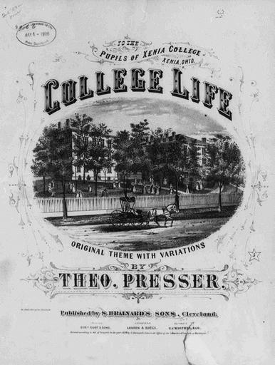 Keywords: CollegeLife1874Cover.jpg College Life 1874 sheet music cover Dedicated To the Pubils of Xenia College Xenia Ohio Sheet music published by S Brainard's Sons Cleveland Ohio Via http //hdl loc gov/loc music/sm1874 02916; border cropped and converted from giv to jpg before uploading 1874 Theo Presser PD-Old Sheet music covers Music in 1874 Xenia College 1874 in Ohio |