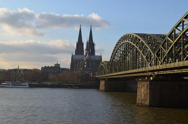 Keywords: cologne panorama hohenzollern bridge cologne cathedral rhine architecture building cologne church steeples historic preservation cathedral spires bridge