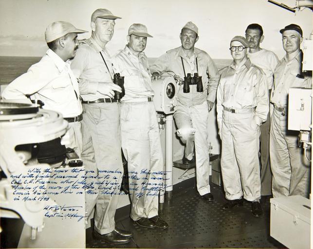 | Keywords: colonel cleon eugene freeman special collection photo colonelcleoneugenefreemanspecialcollectionphoto â 1948 â1948 people groupshot Catalog #: 09_00980 Title: Colonel Cleon Eugene Freeman Special Collection Photo Additional Information: Seven military men onboard the ""Coral Sea"" Handwritten inscription ""With the hope that you remember your shipmates and with kindest personal regards to a brother in arms Col. C. E. Freeman who fully qualifies as an honorary member of the crews of the USS Coral Sea and Battle Carriers Air Group Furi on their shakedown off Cuba in March 1948. H. P. Stone, Capt. US Navy, Cleon Freeman was a Captain of the 110th Air Corps Observation Squadron during World War II and served as a liason officer between the Ninth Air Force and ground forces working in England. He was awarded the Croix de Guerre in 1940 and the Bronze Star Medal in 1944, Tags: Colonel Cleon Eugene Freeman Special Collection Photo, 1948 Repository: San Diego Air and Space Museum Archive Catalog #: 09_00980 Title: Colonel Cleon Eugene Freeman Special Collection Photo Additional Information: Seven military men onboard the ""Coral Sea"" Handwritten inscription ""With the hope that you remember your shipmates and with kindest personal regards to a brother in arms Col. C. E. Freeman who fully qualifies as an honorary member of the crews of the USS Coral Sea and Battle Carriers Air Group Furi on their shakedown off Cuba in March 1948. H. P. Stone, Capt. US Navy, Cleon Freeman was a Captain of the 110th Air Corps Observation Squadron during World War II and served as a liason officer between the Ninth Air Force and ground forces working in England. He was awarded the Croix de Guerre in 1940 and the Bronze Star Medal in 1944, Tags: Colonel Cleon Eugene Freeman Special Collection Photo, 1948 Repository: San Diego Air and Space Museum Archive |