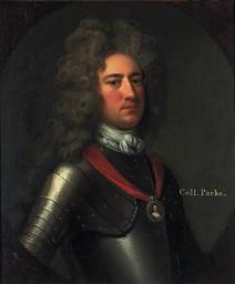 | Keywords: Colonel Daniel Parke by Michael Dahl.jpg title Colonel Daniel Parke 1664/5-1710 colonial governor and army officer bust-length in armour with a miniature portrait of Queen Anne Coll Parke caption centre right Coll Parke who Served as aid de Camp to the Duke of Marlbrough in the Famous Campain 1704 Was sent with the news of the battle of Blenheim and is now Govenor in Chief and Capt Gerrall of the Leeward Ilands text veso Cleaned restored by J Brooks Don tr 1845 text verso oil on canvas 76 x 64 2 cm Christie's online 5398248 Creator Michael Dahl 1705 Michael Dahl PD-old-100 |