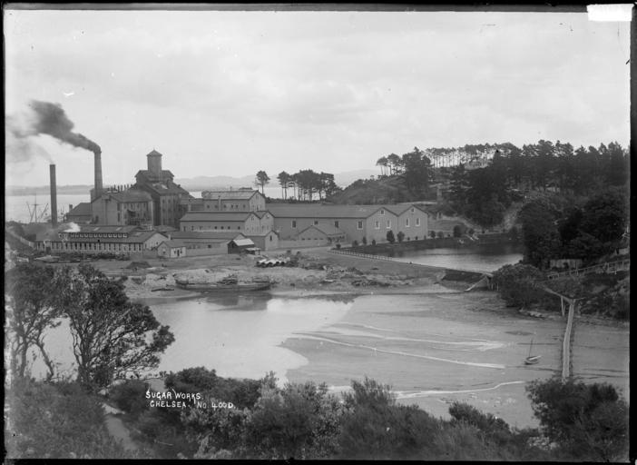 Keywords: blackandwhite monochrome outdoor photo border sky black and white The Colonial Sugar Company works at Chelsea, Birkenhead, Auckland, looking from across Duck Creek, photographed by William A Price between 1900 and 1930. Inscriptions: Inscribed - Photographer's title on negative -bottom left: Sugar Works. Chelsea. No 400D.. William Archer Price lived and practised in Queen Street, Northcote, 1909-1910. Source: New Zealand post office directories Quantity: 1 b&w original negative(s). Physical Description: Dry plate glass negative 4.5 x 6.5 inches Colonial Sugar Company works at Chelsea, Birkenhead, Auckland. Price, William Archer, 1866-1948 :Collection of post card negatives. Ref: 1/2-000291-G. Alexander Turnbull Library, Wellington, New Zealand. natlib.govt.nz/records/22323187 The Colonial Sugar Company works at Chelsea, Birkenhead, Auckland, looking from across Duck Creek, photographed by William A Price between 1900 and 1930. Inscriptions: Inscribed - Photographer's title on negative -bottom left: Sugar Works. Chelsea. No 400D.. William Archer Price lived and practised in Queen Street, Northcote, 1909-1910. Source: New Zealand post office directories Quantity: 1 b&w original negative(s). Physical Description: Dry plate glass negative 4.5 x 6.5 inches Colonial Sugar Company works at Chelsea, Birkenhead, Auckland. Price, William Archer, 1866-1948 :Collection of post card negatives. Ref: 1/2-000291-G. Alexander Turnbull Library, Wellington, New Zealand. natlib.govt.nz/records/22323187