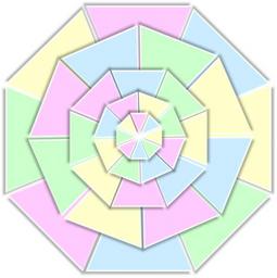 Keywords: color wheel 3d pastels pale pink green yellow blue baby nursery geometric shapes shades hues layers overlay angles triangles rotation design pattern creative artistic decoration element decorative subtle colors colorful playful fun