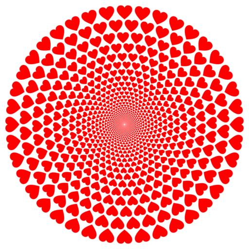 Keywords: colorful prismatic chromatic rainbow hearts love romance passion relationship valentine vortex maelstrom cyclone twirl whirlpool abstract geometric art