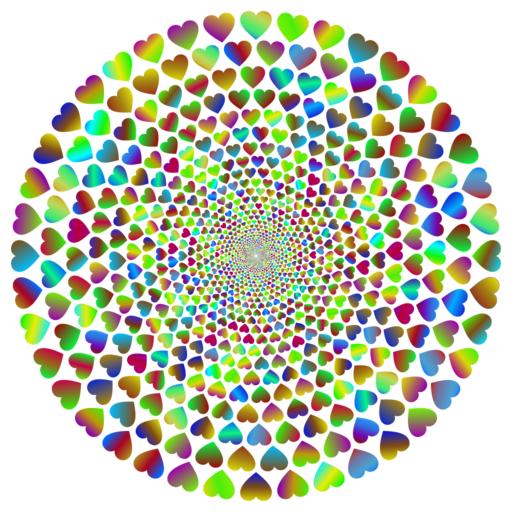 Keywords: colorful prismatic chromatic rainbow hearts love romance passion relationship valentine vortex maelstrom cyclone twirl whirlpool abstract geometric art