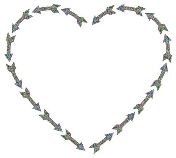 Keywords: colorful prismatic chromatic rainbow triangles triangular low poly polygon abstract geometric art arrow direction pointing find navigation heart love romance passion couple relationship valentine vector svg romantic holiday