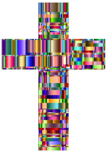 Keywords: colorful prismatic chromatic checkered rainbow abstract geometric art jesus christ cross crucifix christian catholic religion messiah divine holy god