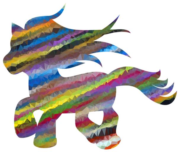 Keywords: colorful prismatic chromatic rainbow low poly polygon triangles abstract geometric art fantasy pony horse cartoon animal comic vector svg