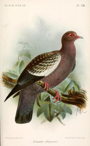 | Keywords: ColumbaAlbipennisKeulemans.jpg Columba albipennis Patagioenas maculosa albipennis Spot-winged Pigeon Catalogue of the Birds in the British Museum Volume 21 1893 Creator John Gerrard Keulemans PD-old-100 John Gerrard Keulemans Catalogue of the Birds in the British Museum Patagioenas maculosa |