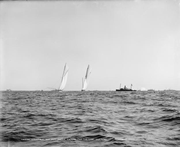 Keywords: Columbia & Shamrock I-13.jpg Columbia and Shamrock coming for the line in the America's Cup October 7th 1899 LOC-image det 4a04876 1899-10-07 PD-Detroit Shamrock ship 1899 Boats under sail Columbia ship 1899 Black and white photographs