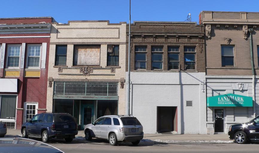 | Keywords: Columbus, Nebraska 1262-1264-1266 26th Ave 1.JPG Columbus Nebraska The block is part of the Columbus Commercial Historic District which is listed in the National Register of Historic Places The red brick building at left is the Columbus Cream Co Building at 1262 26th Ave built ca 1909 Next right is the Style Shop built ca 1927 and remodelled in 1939 Next to that is the Evans Clinic built ca 1923 At the right of the picture with the turquoise Landmark awning is the southeast corner of the Columbus State Bank building at 2601 13th Street built in Classical Revival style in 1905 and remodelled ca 1940 All four buildings are contributing properties in the Historic District own Ammodramus 2010-02-24 Pictures by Ammodramus Taken with Panasonic Lumix DMC-FZ20 Columbus Commercial Historic District Built in Nebraska in 1905 Built in Nebraska in 1909 Built in Nebraska in 1923 Built in Nebraska in 1927 Neoclassical architecture in Nebraska Brick buildings in Nebraska Banks in Nebraska |