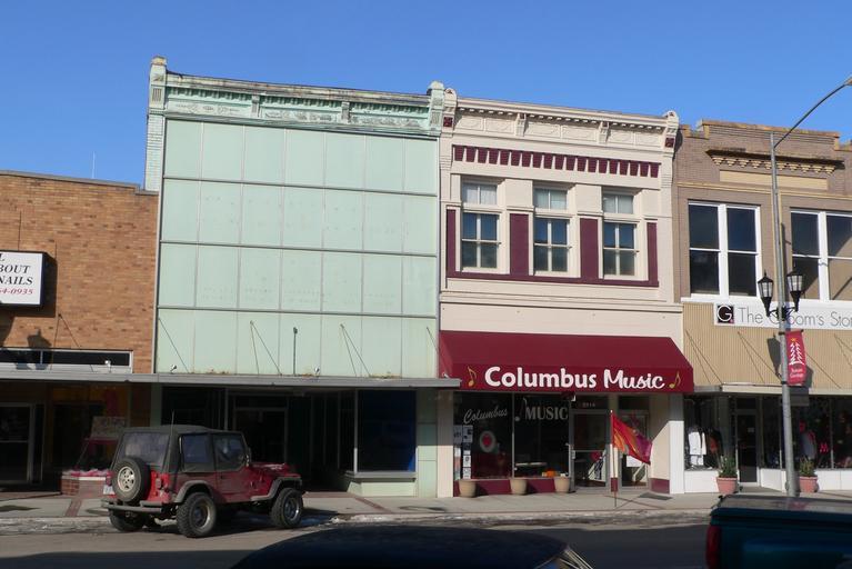 | Keywords: Columbus, Nebraska 2514-2516 13th St.JPG North side of 2500 block of 13th Street in Columbus Nebraska The block is part of the Columbus Commercial Historic District which is listed in the National Register of Historic Places The rightmost building The Groom's Store is the former Reece Shoe Co at 2512 built ca 1913 The building to its left with Columbus Music on the awning is the Hansen Building at 2514 built ca 1914 The pale green building to the left of that is a former bowling alley at 2516 built ca 1902 The brick building partly visible at the left of the picture is the former Palace Meat Market at 2518 built ca 1913 The former bowling alley is a non-contributing property in the Historic District; the other three buildings are contributing properties own 2010-02-12 Ammodramus Pictures by Ammodramus Taken with Panasonic Lumix DMC-FZ20 Columbus Commercial Historic District Built in Nebraska in 1902 Built in Nebraska in 1913 Built in Nebraska in 1914 Shops in Nebraska Former bowling alleys in the United States Automobiles in Nebraska Jeep Wrangler YJ Awnings in the United States |