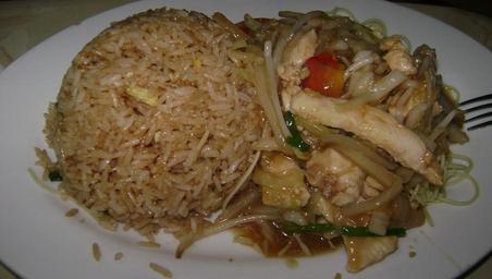 Keywords: Combinado 12032009.JPG es Combinado arroz chaufa y tallarín saltado Lima marzo de 2009 own Dtarazona 2009-03-12 Chifa Noodle-based food of Peru
