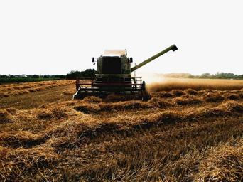 Keywords: combine harvester harvesting wheat crop farm rural machine field outside nature working