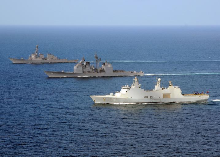 Keywords: Combined Task Force 151 - 090220-N-1082Z-215.jpg 090220-N-1082Z-215 GULF OF ADEN Feb 20 2009 The Danish flexible support ship HDMS Absalon L 16 right the guided-missile cruiser USS Vella Gulf CG-72 and the guided-missile destroyer USS Mahan DDG -72 transit the Gulf of Aden Vella Gulf is the flagship for Combined Task Force 151 a multinational task force conducting counter-piracy operations to detect and deter piracy in and around the Gulf of Aden Arabian Gulf Indian Ocean and Red Sea U S Navy photo by Mass Communications Specialist 2nd Class Jason R Zalasky/Released http //www news navy mil/view_single asp id 69015 2009-02-20 Mass Communications Specialist 2nd Class Jason R Zalasky USN U S Navy photo PD-USGov-Military-Navy Combined Task Force 151 Military in the Horn of Africa Piracy in Somalia General views of USS Vella Gulf CG-72 Naval ships in motion Ships facing left L16 Absalon ship 2004 USS Mahan DDG-72 |