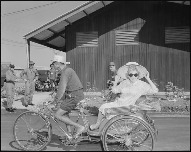 | Keywords: Comedienne Phyllis Diller smiles for the camera as the Bob Hope Christmas show arrives at Korat Air Base, Thailand... - NARA - 542302.tif Scope and content General notes 542302 Local identifier 342-AF-101859USAF Department of Defense Department of the Air Force 09/26/1947 - Still Picture Records Section Special Media Archives Services Division NWCS-S National Archives at College Park 8601 Adelphi Road College Park MD 20740-6001 12/1966 Record group Record Group 342 Records of U S Air Force Commands Activities and Organizations 1900 - 2003 Record group ARC 654 Black and White Photographs of U S Air Force and Predecessors' Activities Facilities and Personnel Domestic and Foreign compiled 1930 - 1975 documenting the period 1863 - 1975 Series ARC 542185 File unit File unit ARC Variant control numbers NAIL Control Number NWDNS-342-AF-101859USAF yes Other versions <gallery>File Comedienne Phyllis Diller smiles for the camera as the Bob Hope Christmas show arrives at Korat Air Base Thailand - NARA - 542302 jpg Cropped JPG</gallery> NARA-cooperation PD-USGov Phyllis Diller Bob Hope and the USO People of the Vietnam War USAF mission at Korat RTAFB during the Vietnam War Christmas 1966 NARA TIF images with categorized JPGs |