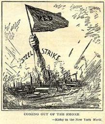 | Keywords: Coming out of the smoke.jpg en newspaper cartoon depicting New York World Kirby 1919-10-11 PD-old PD-US 1919 cartoons 1910s political cartoons of the United States 1919 in the United States Anarchism Anti-communism Strikes in the United States Industrial Workers of the World First Red Scare Economic history of the United States Strikes by metal workers Steel industry New York World Steel industry in art Red banners in art | ||||