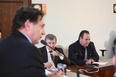 Keywords: O presidente da comissão, deputado Ademir Bier (PMDB) e os deputados Elio Rusch (DEM) e Roberto Aciolli (PV) / Foto: Nani Gois (uso do crédito obrigatório) de comissão finanças