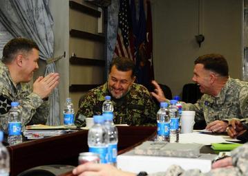 | Keywords: Command Leadership meeting (4681178425).jpg KABUL Afghanistan - General Bismillah Khan Mohammadi Afghan National Army Chief of General Staff center shares a laugh with U S Army Brig Gen Gary Patton left NATO Training Mission - Afghanistan NTM-A deputy commanding general programs and Lt Gen William B Caldwell IV right Commander NATO Training Mission-Afghanistan and Commanding General Combined Security Transition Command “ Afghanistan during a recent visit to Camp Eggers Afghanistan The NTM-A / CSTC-A in coordination with NATO Allies partners and key Afghan stakeholders generates the Afghan National Security Forces develops capable ministerial systems and resources the fielded force to build sustainable capacity and capability in order to enhance the Government of the Islamic Republic of Afghanistan ™s ability to achieve stability and security in Afghanistan U S Navy photo by Mass Communication Specialist 3rd Class Kirk Putnam/RELEASED http //www flickr com/photos/ntm-a_cstc-a/4681178425/ Command Leadership meeting Uploaded by russavia 2010-06-08 10 48 http //www flickr com/people/44825691 N08 NATO Training Mission-Afghanistan Mass Communication Specialist 3rd Class Kirk Putnam/Mass Communication Specialist 3rd Class Kirk Putnam U S Navy photo PD-USGov-Military-Navy File Upload Bot Magnus Manske 2013-07-13 Files from NATO Training Mission-Afghanistan Flickr stream Afghanistan photos from Flickr check needed Gary S Patton Bismillah Khan Mohammadi in 2010 William B Caldwell IV |