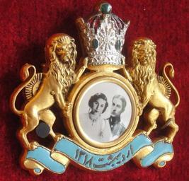 | Keywords: Commemoration Medallion of Marriage of Mohammad Reza Shah Pahlavi and Princess Fawzia of Egypt - March 1939.JPG en Commemoration Medallion of Marriage of Mohammad Reza Shah Pahlavi and Princess Fawzia of Egypt - March 1939 - The medallion is now in Sahebgharanie palace in Niavaran palace complex fa مدال یادبود ازدواج شاه و فوزیه - اردیبهشت 1318 - این مدال در کاخ صاحبقرانیه در مجموعه کاخ موزه نیاوران نگهداری میشود own Truth Seeker fawiki 2010-08-05 Truth Seeker fawiki cc-by-sa-3 0 Niavaran Palace Princess Fawzia Fuad of Egypt Mohammad Reza Pahlavi Pahlavi Crown in heraldry Commemorative medals Lion and Sun 1939 in Egypt |