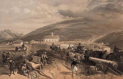 Keywords: Commissariat difficulties - the road from Balaklava to Sevastopol.jpg Artwork en Print shows wagons and a cannon mired in mud broken wagons and dead or dying horses and oxen on the roadside at Kadikoi on the road to Sevastopolʹ W Simpson; E Walker lith 38 4 x 57 1 print lithograph tinted accession number LC-DIG-ppmsca-05676 digital file from original print Institution Library of Congress ppmsca 05676 Rights Advisory No known restrictions on publication <gallery> </gallery> Title from item Plate in The seat of war in the east Dedicated by permission to Her most gracious Majesty the Queen / William Simpson First series London Published by Paul Dominic Colnaghi Co publishers to Her Majesty 13 14 Pall Mall East ; Paris Goupil Cie 1855 plate 13 Colnaghis' authentic series PD-100 William Simpson Uploaded with UploadWizard Kadikoy |