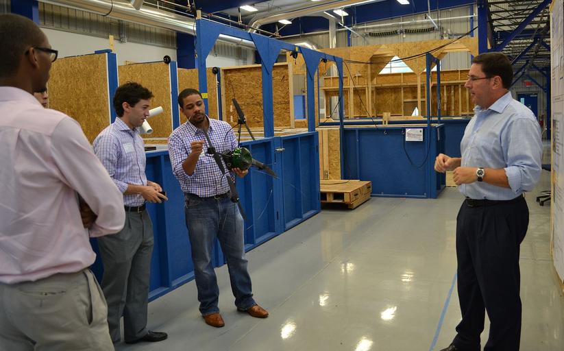 | Keywords: Committee on Commerce, Science, and Transportation Tour -3 (9576746789).jpg Adam Jacoff Right of the NIST Engineering Lab Intelligent Systems Division briefs staffers from the Senate Committee on Commerce Science and Transportation on standard test methods research to measure robot mobility/maneuvering manipulation energy/power sensing radio communication human-robot interaction logistics and safety in the new NIST Robotic Test Facility Credit NIST/A Eustis Disclaimer Any mention of commercial products within NIST web pages is for information only; it does not imply recommendation or endorsement by NIST Use of NIST Information These World Wide Web pages are provided as a public service by the National Institute of Standards and Technology NIST With the exception of material marked as copyrighted information presented on these pages is considered public information and may be distributed or copied Use of appropriate byline/photo/image credits is requested https //www flickr com/photos/usnistgov/9576746789/ Committee on Commerce Science and Transportation Tour 3 2013-08-13 08 49 https //www flickr com/people/63059536 N06 National Institute of Standards and Technology PD-USGov National Institute of Standards and Technology https //flickr com/photos/63059536 N06/9576746789 2016-09-07 01 50 47 United States Government Work Uncategorized 2016 December 21 |