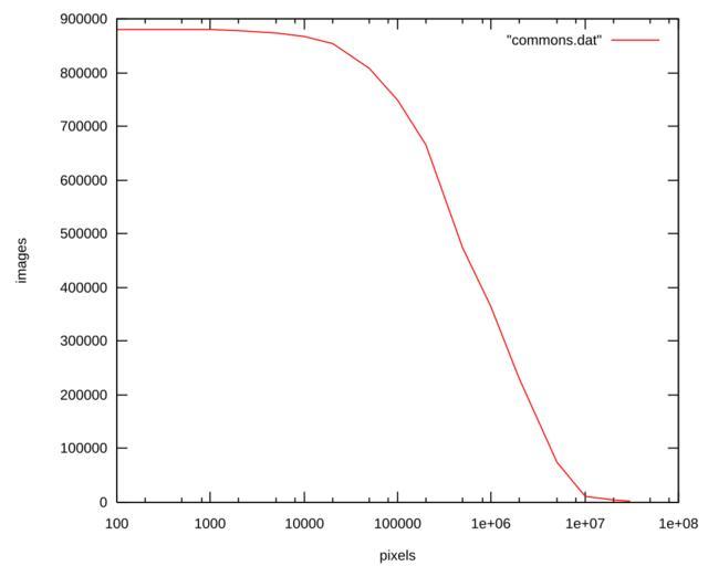 Keywords: Commons stats October 2006.svg x size of the image in pixels warning a few SVG images have very large pixel sizes log scale y number of images greater than this size Wikimedia statistics