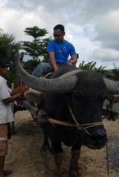 | Keywords: Community relations project in Thailand DVIDS206981.jpg en Petty Officer 1st Class John Paul Cacal aviation boatswain's mate handling a Sailor aboard the aircraft carrier USS Ronald Reagan sits on top of a water buffalo during the Phuket city explorer Moral Welfare and Recreation sponsored tour The tour included interaction with water buffalos monkeys and demonstrations on how to make rubber and grind rice like the locals The Ronald Reagan Carrier Strike Group is on a routine deployment in the 7th Fleet area of responsibility Operating in the Western Pacific and Indian Ocean the U S 7th Fleet is the largest of the forward-deployed U S fleets covering 52 million square miles with approximately 50 ships 120 aircraft and 20 000 Sailors and Marines assigned at any given time 2009-09-23 Petty Officer 3rd Class Amanda Ray https //www dvidshub net/image/206981 090923-N-+++++-028 2009-09-28 04 29 PHUKET TH PD-USGov-Military-Navy USS Ronald Reagan CVN-76 Images from DoD uploaded by Fæ |