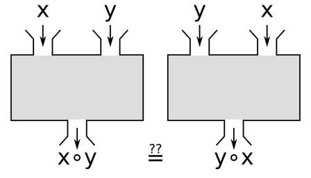 | Keywords: Commutativity of binary operations.svg en Visualizes the concept of commutativity for binary operations using a black box model de Dieses Bild verdeutlicht das Konzept der Kommutativität binärer Operatoren anhand des Black Box-Modells 2016-09-21 own Talonnn other versions <gallery widths 300 heights 150> File Commutativity of binary operations svg File Commutativity of binary operations without question mark svg </gallery> cc-zero Commutativity Algebraic structures Elementary mathematics |