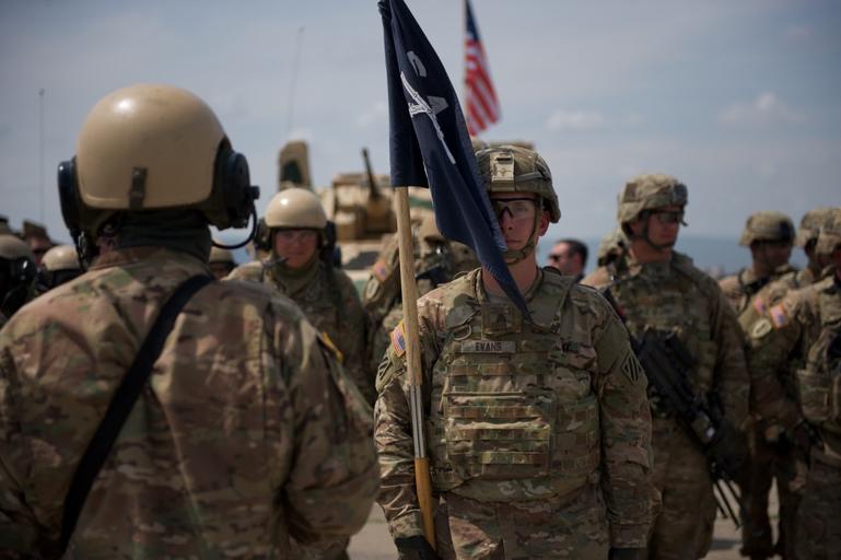 Keywords: noble partner noblepartner army u.s. army usarmy people VAZIANI TRAINING AREA, Georgia - A Soldier assigned to Company A, 1st Battalion, 64th Armor Regiment, stands with the unit’s guidon in preparation for the opening ceremony for Exercise Noble Partner 16, May 11, at Vaziani Training Area, Georgia. The ceremony included static displays of multinational soldiers and their equipment, airborne operations and speeches from senior officials, including Georgian President Giorgi Margvelashvili. The exercise is taking place May 11 to 26 and includes approximately 1300 participants from the U.S., Georgia and the U.K. The exercise is a reoccurring training event that is taking place at Vaziani Training Area, Georgia. Noble Partner 16 is a critical part of Georgia's training for its contribution of a light infantry company to the NATO Response Force (NRF) and enhances Georgian territorial self-defense capability. (Photo by Sgt. Daniel Cole, U.S. Army Europe Public Affairs) VAZIANI TRAINING AREA, Georgia - A Soldier assigned to Company A, 1st Battalion, 64th Armor Regiment, stands with the unit’s guidon in preparation for the opening ceremony for Exercise Noble Partner 16, May 11, at Vaziani Training Area, Georgia. The ceremony included static displays of multinational soldiers and their equipment, airborne operations and speeches from senior officials, including Georgian President Giorgi Margvelashvili. The exercise is taking place May 11 to 26 and includes approximately 1300 participants from the U.S., Georgia and the U.K. The exercise is a reoccurring training event that is taking place at Vaziani Training Area, Georgia. Noble Partner 16 is a critical part of Georgia's training for its contribution of a light infantry company to the NATO Response Force (NRF) and enhances Georgian territorial self-defense capability. (Photo by Sgt. Daniel Cole, U.S. Army Europe Public Affairs) |