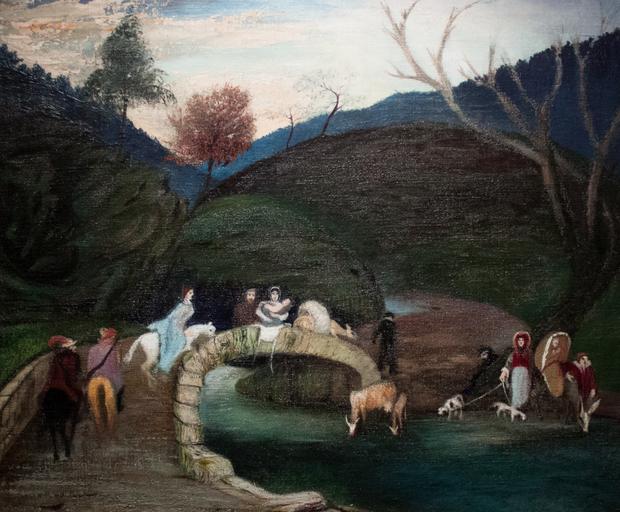 | Keywords: Company Passing over a Bridge, c 1903.jpg Artwork Creator Tivadar Csontváry Kosztka ~ 1896 oil on canvas in collaboration with Virag Judit Gallery Budapest object history credit line own photo by Szilas Other versions Commonist PD-old-70 1919 Paintings by Tivadar Csontváry Kosztka 20th-century oil on canvas paintings in Hungary |