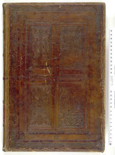 | Keywords: Compendiosa totius Anatomie delineatio, - Upper cover (c43h2).jpg Style Panel design Dated; Caption Upper cover; Colour Brown; Edge Unspecified exhibition history Decorative Technique Tooled in blind Panel stamp in blind; Cover Material Calf This may well be tooled in gold not blind Possibly bound in Saxony or Tubingen Macchi states; A very similar altough not identical panel-stamp example upper cover 1 st top right; lower cover 3 rd bottom left is reproduced in M Von Arnim's Einbandkunst n 46 on Martin Luther Eine einfeltige weise zu beten für einen guten Freund Leipzig Valentin Baptist 1551 An analogous cover bound in Tübingen by the Jakob Andreä Master kept in the Biblioteca Apostolica Vaticana I Schunke Die Einbände der Palatina pl IC no text is reproduced in M von Arnim's Einbandkunst n 70 on Jean Jacques Boissard Emblematum liber Frankfurt M Theodor de Bry 1593 too The layout is analogous but the background is richer in the second panel-stamp kind I Schunke refers in this last case to a Samuel Streler see C 24 a 18 C 65 l 9 successor because of the bindings he produced for the Tübingen theologian Jakob Andreä 1528-1590 object history Text 1553; London; Unspecified object type Cc-zero place of creation Binding Germany place of discovery Unspecified British Library image http //www bl uk/catalogues/bookbindings/LargeImage aspx RecordId 020-000006230 ImageId ImageId 42720 Copyright BL Compendiosa totius Anatomie delineatio Uploaded with GWToolset Compendiosa totius Anatomie delineatio - Upper cover c43h2 http //www webarchive org uk/bldatasets/bindings/7871_4 jpg Bookbinding 16th-century bookbinding British Library Bookbindings |