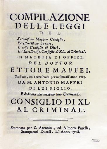 | Keywords: Compilazione delle leggi del serenissimo Maggior Consiglio, 1728 - 448.tif Mansutti Foundation Milan Italy and uploaded in partnership Disponibile nella biblioteca della Fondazione Mansutti di Milano e caricata in partnership Available in the library of the Mansutti Foundation Milan Italy and uploaded in partnership Institution Fondazione Mansutti PD-old-100-1923 2016-04-10 Fondazione Mansutti Fondazione Mansutti other versions Custom license marker 2016 04 10 PD-old-100-1923 Insurance texts Media from Fondazione Mansutti Republic of Venice 1728 books Books in Italian Title pages from Italy Books published in Venice |