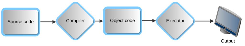 Keywords: Compiled Code Flow Diagram.svg en A simple flow diagram showing the process of compiling source code to object code and then executing it own Fishpi 2010-09-05 Compiling and linking flowcharts Programming diagrams SVG flow charts