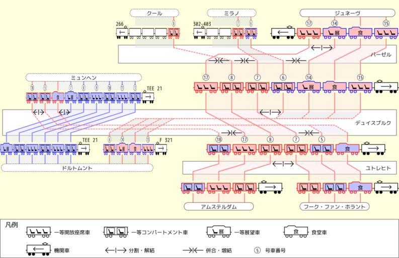 | Keywords: Composition of TEE 9 Rheingold in 1965 ja.svg ja 1965å¹´å¤ãƒ イヤã«ãŠã‘る北行TEEラインゴルト TEE 9 ã ラインプファイル TEE 21 ã®ç·¨æˆãŠã‚ˆã³è»Šä¸¡å…¥ã‚Œæ›ãˆã®å›³ã ‚ 機関車ã®äº¤æ›ã¯å›³ç¤ºã—ã¦ã„ãªã„ã ‚ã¾ãŸæ©Ÿé–¢è»Šã®ã‚·ãƒ«ã‚¨ãƒƒãƒˆï¼ˆè»¸æ•°ç‰ï¼‰ã¯æ£ç¢ºã¨ã¯é™ã‚‰ãªã„ã ‚ TEE21 ラインプファイルã¯ãƒŸãƒ¥ãƒ³ãƒ˜ãƒ³ - ãƒ•ãƒ©ãƒ³ã‚¯ãƒ•ãƒ«ãƒˆé–“é †ç·¨æˆã ‚3å·è»Šã¯ãƒ•ランクフルト - ドルトムント間ã®ã¿é £çµã ‚ Mertens Maurice; Malaspina Jean-Pierre(2007) La légende des Trans-Europ-Express LR Press ISBN 978-2-903651-45-9 p 255ã®æƒ…å ±ã«åŸºã¥ãä½ æˆã ‚ en Composition of TEE 9 Rheingold and related trains in the summer schedule of 1965 own Matsukaze 2011-02-19 TEE Rheingold |