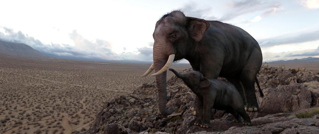 Keywords: computer art elephants baby elephant desert africa animals fauna