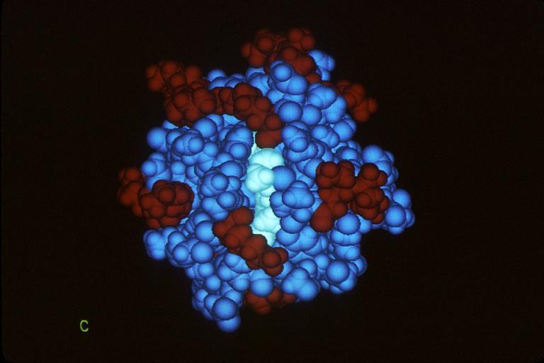 | Keywords: Computer cytochrome C.jpg This image depicts cytochrome c which is a small protein used in the electron transfer chain Computer graphics are made by utilizing data fed into a computer This data may consist of chemical weights and measures and the structure of specific elements A three-dimensional image can be made so one can visualize on otherwise minute structure Topics/Categories Historical Graphics Type Color Photo Source National Cancer Institute Dr Richard Feldmann Photographer 2133 1982-03 Reuse Restrictions None - This image is in the public domain and can be freely reused Please credit the source and/or author listed above Dr Richard Feldmann Photographer PD-USGov-HHS-NIH Media from National Cancer Institute Visuals Online Images uploaded by Fæ |