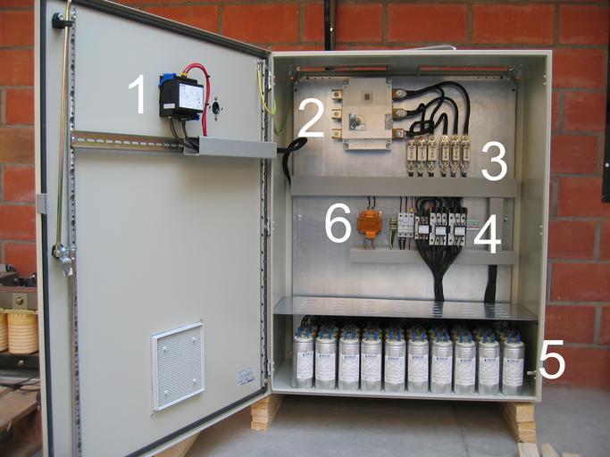| Keywords: Condensatorenbatterij.jpg  Beschrijving mogelijke opstelling condensatorenbatterij Foto Bert Verbauwhede Zulte Uitleg Bert Verbauwhede Zulte Condensatorenbatterij type B35 400V; merk Comar Benelux<br> Legenda Regelaar Aansluitpunten Beveiliging HOV-zekeringen Kontaktoren magneetschakelaars Condensatoren monofazige tubes in driehoek geschakeld Transformator 400/230V voor stuurspanning kontaktoren Power Factor Correction Unit Automatic Capacitor Bank Regulator Network connection points Fuses Contactors Capacitors single-phase units delta-connection Transformer 400/230 Volts for control power contactors ventilation nl wikipedia 2006-02-27 Beuhri wikipedia nl Beuhri original upload log page nl wikipedia Condensatorenbatterij jpg 2006-02-27 14 26 Beuhri 2272×1704×8 1170865 bytes <nowiki>Beschrijving mogelijke opstelling condensatorenbatterij Foto Bert Verbauwhede Zulte Uitleg Bert Verbauwhede Zulte Condensatorenbatterij type B35 400V; merk Comar Benelux</nowiki> Capacitors Electrical devices Power factor correction units Diagrams labelled with numbers only |