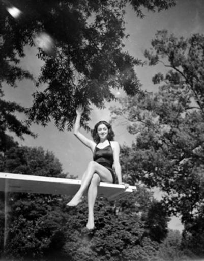 Keywords: tarboro (n.c) tarboronc swimming pools swimmingpools carolyn perrest carolynperrest blackandwhite monochrome outdoor black and white Carolyn Perrest [?] Tarboro, NC, Champ Swimmer, thought to be at a local Tarboro swimming pool, May 1939. Taken by Baker, NC Conservation and Development Department, Travel and Tourism photo files, State Archives of North Carolina, Raleigh, NC. We need your help! Is this swimming pool the famous Tarboro "Cool Pool"? From the NCPedia ncpedia.org/cool-pool: On 9 July 1933 the Tarboro Town Council voted to ask Frick and Company of Waynesboro, Pa., to design and install a refrigerating unit for its new municipal swimming pool. After operating for only three months, the olympic-design pool, containing 300,000 gallons of water and with a constant flow of 400 gallons per minute, had become uncomfortably warm from the summer's record heat and the activity of swimmers. By mid-August Frick had installed the refrigerating device at a cost of $2,592, making the Tarboro pool what is believed to have been the first and perhaps only refrigerated outdoor pool in the country. Tarboro's "cool pool" drew crowds of swimmers and swimming meets throughout the 1930s. Carolyn Perrest [?] Tarboro, NC, Champ Swimmer, thought to be at a local Tarboro swimming pool, May 1939. Taken by Baker, NC Conservation and Development Department, Travel and Tourism photo files, State Archives of North Carolina, Raleigh, NC. We need your help! Is this swimming pool the famous Tarboro "Cool Pool"? From the NCPedia ncpedia.org/cool-pool: On 9 July 1933 the Tarboro Town Council voted to ask Frick and Company of Waynesboro, Pa., to design and install a refrigerating unit for its new municipal swimming pool. After operating for only three months, the olympic-design pool, containing 300,000 gallons of water and with a constant flow of 400 gallons per minute, had become uncomfortably warm from the summer's record heat and the activity of swimmers. By mid-August Frick had installed the refrigerating device at a cost of $2,592, making the Tarboro pool what is believed to have been the first and perhaps only refrigerated outdoor pool in the country. Tarboro's "cool pool" drew crowds of swimmers and swimming meets throughout the 1930s.