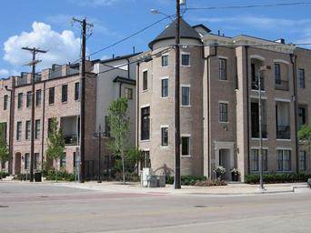 Keywords: condo condominium urban urban condos architecture townhouse townhome dallas texas houses homes condos condominiums sky clouds farmers market district buildings outside summer