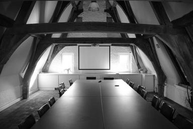 MAKE A MEME View Large Image conference architecture building black white table beams