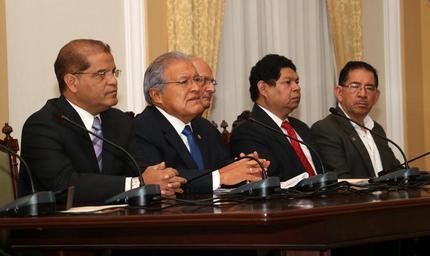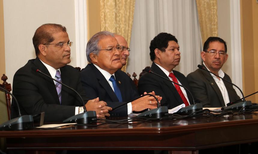 Keywords: people indoor Presidente Salvador Sánchez Cerén acompañado de miembros de su Gabinete durante la Conferencia sobre contribución Especial para Financiar la Seguridad. Presidente Salvador Sánchez Cerén acompañado de miembros de su Gabinete durante la Conferencia sobre contribución Especial para Financiar la Seguridad.