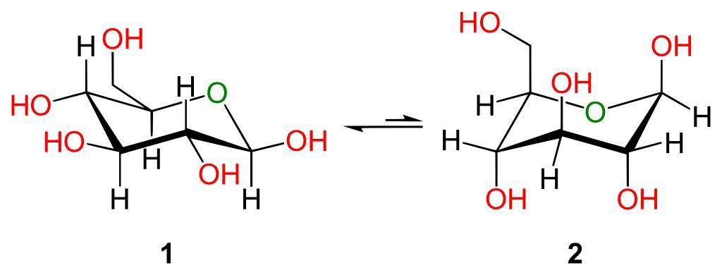 | Keywords: Conformation glucopyranose.svg beta-D-glucopyranose; 1 <sup>4</sup>C<sub>1</sub>-conformation 2 <sup>1</sup>C<sub>4</sub>-conformation beta-D-Glucopyranose; 1 <sup>4</sup>C<sub>1</sub>-Konformation 2 <sup>1</sup>C<sub>4</sub>-Konformation own Yikrazuul 2010-09-10 Conformation Glucose |