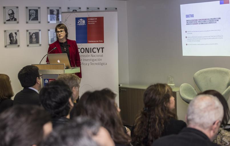 | Keywords: indoor Foto: Natalia Mackenzie, Directora del Programa Explora de CONICYT •¿Qué entendemos por ciencia y tecnología? ¿Consideramos que nuestra educación en C y T es óptima? ¿Qué tanto prestigio tienen los científicos para los chilenos?, son algunas preguntas que responde la Encuesta Nacional de Percepción Social de la Ciencia y la Tecnología en Chile. CONICYT dará a conocer a la comunidad los resultados de la Encuesta Nacional que mide la Percepción Social de la Ciencia y la Tecnología en Chile, consulta realizada entre los meses de octubre 2015 y enero 2016, en zonas urbanas y rurales, y que busca establecer una línea base que permita conocer el estado actual en que se encuentra la relación de la sociedad con esta actividad. “Los resultados nos entregan valiosos antecedentes sobre la forma en que los chilenos entienden la ciencia y la actividad científica, por ejemplo, que la CyT nos permitirán tener una mejor calidad de vida. Esto nos obliga a compartir estos resultados con toda la comunidad, pero al mismo tiempo, comprender cómo la gente percibe estos temas nos permite mejorar nuestro aporte a la formación, desde los párvulos a la población en general; pero también traducir esa mejor comprensión y valoración de estas áreas puede impactar en los recursos que necesitamos no sólo en el ámbito formativo, sino también en el quehacer científico y tecnológico, que es imprescindible para el desarrollo económico y social del país”, explica Christian Nicolai, Director Ejecutivo de CONICYT. La encuesta presencial se aplicó a nivel nacional (en las 15 regiones del país) a 7.637 personas de 15 años y más, y se orientó bajo un marco teórico desarrollado en el documento “Consideraciones para la definición y medición de la cultura científica en Chile”, además de apreciaciones de la Red Iberoamericana de Indicadores de Ciencia y Tecnología, RICYT. Cabe destacar que, así como lo hace Chile, 11 países de la Región han aplicado este tipo de encuestas durante los últimos 15 años para conocer la percepción pública, acerca de la ciencia y la tecnología, abordando principalmente las dimensiones como: imagen sobre la CyT y de quienes las desarrollan; interés, nivel de información y hábitos cotidianos vinculados con estas temáticas; y la valoración y utilidad que éstas tienen. “Los datos que arroja esta encuesta son fundamentales para que el esfuerzo que realiza el país en Ciencia y Tecnología tenga cada día una mayor vinculación con las preocupaciones de la sociedad y una creciente incidencia en nuestro desarrollo social, cultural, y económico. Acoger estas prioridades va justamente en la línea de fortalecer las capacidades de planificación de CONICYT que nos encomendó la Presidenta de la República a comienzos de este año”, recalcó Mario Hamuy, Presidente del Consejo de CONICYT. “Estos datos otorgan un gran potencial como insumo de orientación para la toma de decisiones de las autoridades, universidades, fundaciones, empresas e investigadores comprometidos con el gran desafío que tenemos como país de incorporar el conocimiento y la inteligencia como herramientas que impulsen nuestro desarrollo”, agrega el doctor Hamuy. Del mismo modo, el Programa Explora de CONICYT concentra sus esfuerzos en ayudar a instaurar esta cultura científica en la población, a través de acciones de educación no formal en ciencias dirigidas a las nuevas generaciones desde la escolaridad temprana. ¿Cuánto de este conocimiento, actitudes y habilidades para la ciencia y tecnología han sido incorporadas por la población? “Es claro entonces que la ciencia no es de incumbencia exclusiva de los científicos, así como tampoco es un conocimiento que se crea para guardarse. La ciencia y tecnología están presentes en todos los espacios en que nos desarrollamos y, sin embargo, aún no sabemos cómo y cuánto se valora en nuestro país, cómo nos modifican y, también, cambian el rumbo de las sociedades”, explicó Christian Nicolai. Este estudio fue realizado por el Dirección de Estudios Sociales de la Pontificia Universidad Católica de Chile, DESUC. Foto: Natalia Mackenzie, Directora del Programa Explora de CONICYT •¿Qué entendemos por ciencia y tecnología? ¿Consideramos que nuestra educación en C y T es óptima? ¿Qué tanto prestigio tienen los científicos para los chilenos?, son algunas preguntas que responde la Encuesta Nacional de Percepción Social de la Ciencia y la Tecnología en Chile. CONICYT dará a conocer a la comunidad los resultados de la Encuesta Nacional que mide la Percepción Social de la Ciencia y la Tecnología en Chile, consulta realizada entre los meses de octubre 2015 y enero 2016, en zonas urbanas y rurales, y que busca establecer una línea base que permita conocer el estado actual en que se encuentra la relación de la sociedad con esta actividad. “Los resultados nos entregan valiosos antecedentes sobre la forma en que los chilenos entienden la ciencia y la actividad científica, por ejemplo, que la CyT nos permitirán tener una mejor calidad de vida. Esto nos obliga a compartir estos resultados con toda la comunidad, pero al mismo tiempo, comprender cómo la gente percibe estos temas nos permite mejorar nuestro aporte a la formación, desde los párvulos a la población en general; pero también traducir esa mejor comprensión y valoración de estas áreas puede impactar en los recursos que necesitamos no sólo en el ámbito formativo, sino también en el quehacer científico y tecnológico, que es imprescindible para el desarrollo económico y social del país”, explica Christian Nicolai, Director Ejecutivo de CONICYT. La encuesta presencial se aplicó a nivel nacional (en las 15 regiones del país) a 7.637 personas de 15 años y más, y se orientó bajo un marco teórico desarrollado en el documento “Consideraciones para la definición y medición de la cultura científica en Chile”, 