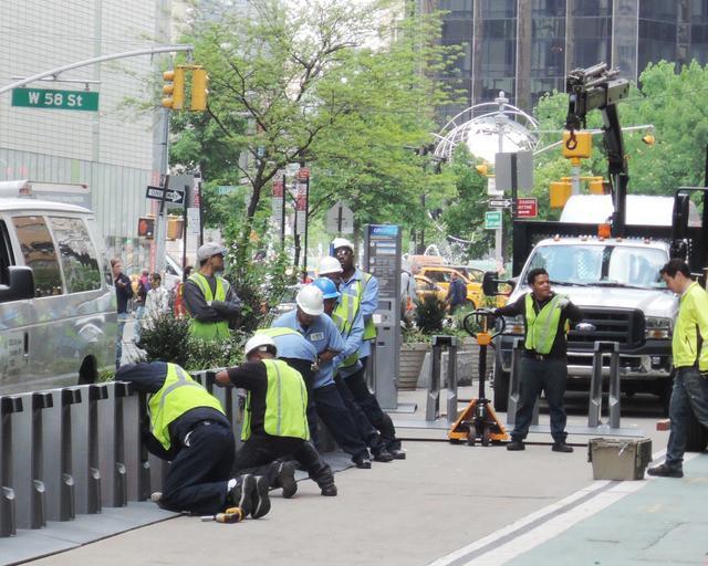 | Keywords: Connecting Citibike section Bwy 58 jeh.jpg en Looking north zoomed as workers connect sections 2013-05-15 15 25 08 own Jim henderson 40 46 0 6 N 73 58 54 1 W prec 5_heading NNW cc-zero Uploaded with UploadWizard 58th Street Manhattan Citi Bike Bike stations in the United States Construction in New York Men at work in the United States |