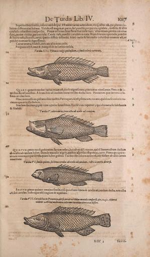 Keywords: Conradi Gesneri medici Tigurini Historiae animalium liber IV (15569445225).jpg De Turdis Lib IV <br> 19 <br> 1017 <br> Superioribus fimilis colore vero difpar Eft enim varius admodum vixq; ullus eft qui pluf es co - <br> lorumdifFerentiashabeat Viridiseftmagnaexpartejfedpunttispuipureis ceruleis indicis aliis <br> confufis coloribus confperfus Pirtnze ad branchias flavae five rufae lunt alix omnes partim easruleaj <br> funt partim virides partim rufae Cauda rufa punctis car ruleis notata Branchiarum opercula punclis <br> lineis rufis finuofis certis fpatiis diffitis diftin a» Adeo variis iucundis coloribus of natus eftjUfc <br> pulchri nomine fit digniflimus <br> Carne tenera friabili delicata aliis non cedit <br> Frequens eft Romaj Antipoli in Lerino infula <br> Turdm III I Tfittacus vulgo quibttfdam afimili coloris varietate <br> t <br> F <br> C <br> to <br> © <br> Qja rt 1 generis turdus varius etiam eft dorfo nigrefcente pinna eius virefcente Ventre la- <br> teribus flavefcentibus A branchiis ad caudam lineaz virides dudhe funt Pinnarum qua; in ventue in- <br> fimacarruleafunt <br> Hinc nonnullis ex pifcatoribus noftris Pcrroquet»id eft pfittacum vocant qu6d ea fit coloris va- <br> rietate qua avis illa Indica <br> Similemfuccumgignit cum cejteris faxatilibus Facileconcoquitur quodtenerafitfubftantia <br> friabili <br> Turdus V colore aureo t lmea alba ab oculis ad caudam <br> 4©- <br> Qv intvm genus turdi gobionem flavura refert hoc ab eo di crepans quod lineam albam du am <br> ab oculis ad caudam habet Deinde maculis nigris quibus aiperfus eft gobms caret Pinna quoque u- <br> nka in ventre neque divifa quam habet gobius Turdus ifte color e aureo eft nec differt ab aiiis carnis <br> teneritate <br> THrdmVLfmilisquintOifedlineac rulea abocuHsadcaudam roflroac terii dtverfi <br> 5 <br> Sextvm genusquinto omninofimile nifiqu6dhuiclineaab pculisadcaudamdncl a nonalba <br> eft fed caerulea roftroque eft longiore aquilino <br> Turdm KII Cero ditius in Provinciajorfo aureo viriMtts maculis CdHjperfr c k V Jithend <br> videtur sAbhocundecimuscolortmvartetateduntaxatdtffert <br> I <br> Sfff <br> Septi- 42166668 132845 65980 Page 1017 Text IV http //www biodiversitylibrary org/page/42166668 1604 10 5962/bhl title 65980 Belon Pierre; Cambier Andreas; Gessner Conrad; Rondelet Guillaume NameFound Indica NameConfirmed Indica NameBankID 4432528 NameFound Pinna NameConfirmed Pinna EOLID 57673 NameBankID 2692221 NameFound Turdis NameFound Turdus NameConfirmed Turdus EOLID 14395 NameBankID 2472690 Biodiversity Heritage Library Conradi Gesneri medici Tigurini Historiae animalium liber IV qui est De piscium aquatilium animantium natura cum iconibus singulorum ad viuum expressis ferè omnibus DCCXII Early works to 1800 Fishes Mollusks Pre-Linnean works Zoology Smithsonian Libraries bhl page 42166668 dc identifier http //biodiversitylibrary org/page/42166668 pre-linnean works smithsonian libraries Information field Flickr posted date ISOdate 2014-10-19 Check categories 2015 August 25 CC-BY-2 0 BioDivLibrary https //flickr com/photos/61021753 N02/15569445225 2015-08-25 17 58 06 cc-by-2 0 PD-old-70-1923 Conradi Gesneri medici Tigurini Historiae animalium liber IV Photos uploaded from Flickr by Fæ using a script
