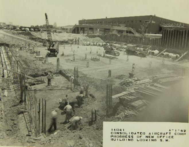 | Keywords: sdasm san diego air and space museum sandiegoairandspacemuseum aviation aeropace factories aeropacefactories san diego sandiego convair consolidated monochrome outdoor Call No.: 10-000010 Notes: Construction of Administration Building Title: Consolidated/Convair Aircraft Factory San Diego Year: 1942 Corp. Name: Convair/Consolidated Description: 8 x 10 Black and White Glossy Print Repository: San Diego Air and Space Museum Archive Call No.: 10-000010 Notes: Construction of Administration Building Title: Consolidated/Convair Aircraft Factory San Diego Year: 1942 Corp. Name: Convair/Consolidated Description: 8 x 10 Black and White Glossy Print Repository: San Diego Air and Space Museum Archive |