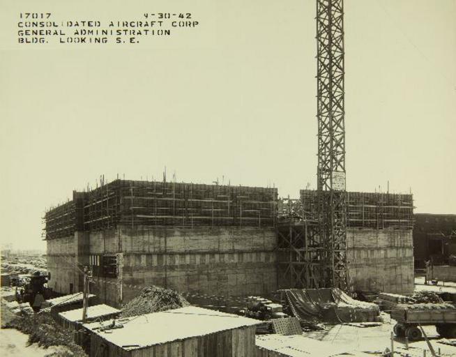 | Keywords: sdasm san diego air and space museum sandiegoairandspacemuseum aviation aeropace factories aeropacefactories san diego sandiego convair consolidated outdoor monochrome Call No.: 10-000073 Notes: Construction of Administration Building Title: Consolidated/Convair Aircraft Factory San Diego Year: 1942 Corp. Name: Convair/Consolidated Description: 8 x 10 Black and White Glossy Print Repository: San Diego Air and Space Museum Archive Call No.: 10-000073 Notes: Construction of Administration Building Title: Consolidated/Convair Aircraft Factory San Diego Year: 1942 Corp. Name: Convair/Consolidated Description: 8 x 10 Black and White Glossy Print Repository: San Diego Air and Space Museum Archive |