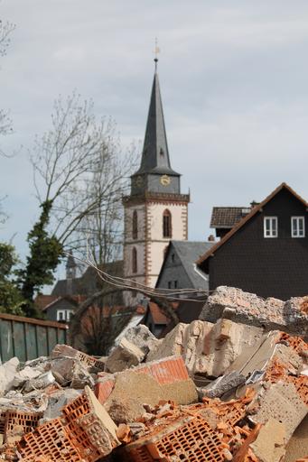 Keywords: construction work church oberursel st ursula crash tear off site broken demolition building architecture dilapidated home ruin city destroy