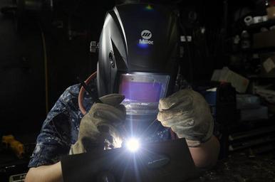 Keywords: construction worker welding welder industry metal military person labor build helmet mask job task